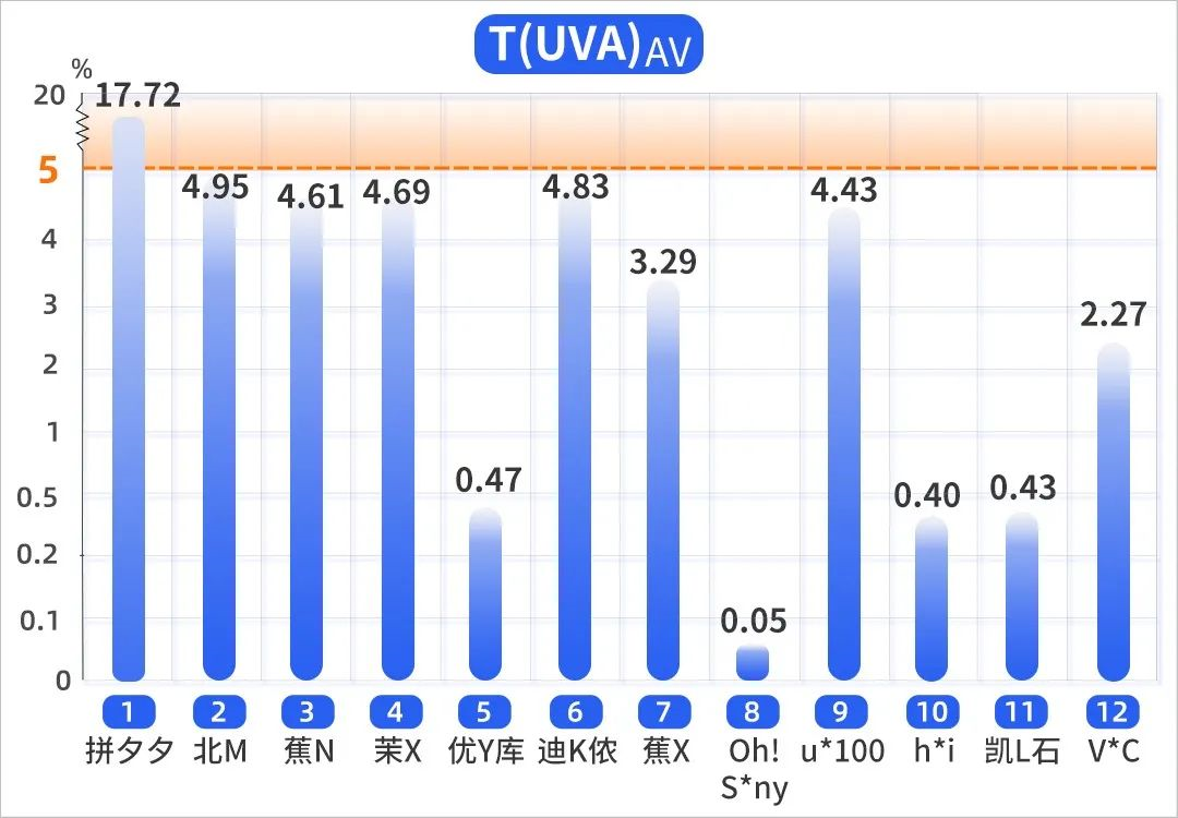 參照GB/T 18830-2009《紡織品 防紫外線性能的評(píng)定》,除了 2 號(hào)和 6 號(hào),在 UVA 平均透射比方面未達(dá)標(biāo),其余 9 款,都能達(dá)到防曬要求。