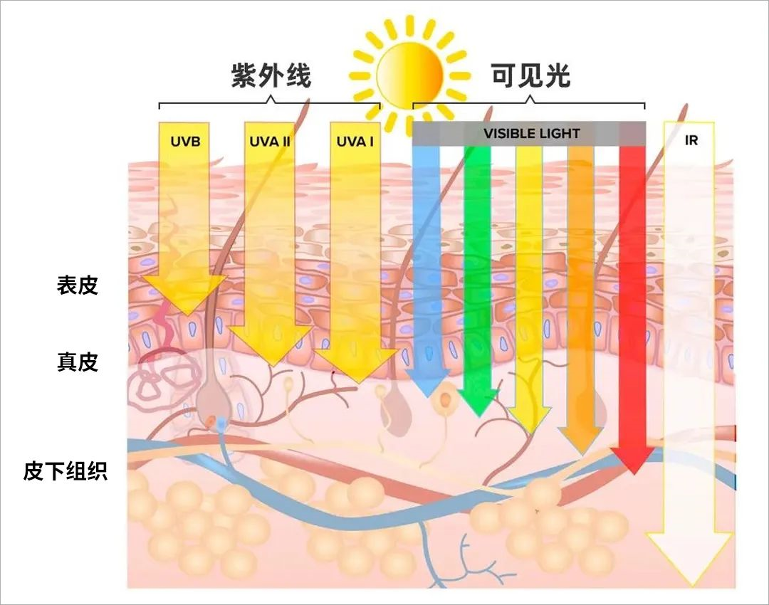 UVA 作為紫外線組成中的“大將”,穿透性強(qiáng),極易導(dǎo)致皮膚曬老、曬黑。