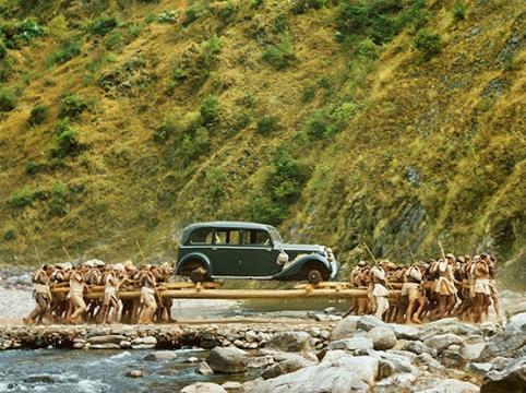 人們臺(tái)著第一輛車(chē)到加德滿(mǎn)都山谷,它們翻過(guò)山丘大約100英里,因?yàn)樯焦葲](méi)有道路連接。