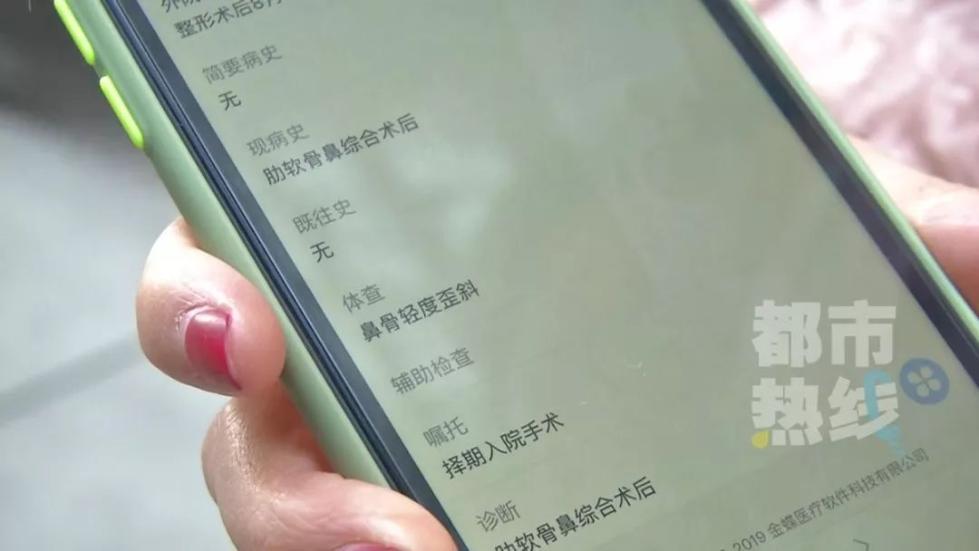 而當(dāng)記者問胡經(jīng)理,醫(yī)生有沒有說劉女士鼻子里面填充的是什么時(shí),胡經(jīng)理表示沒有問這些,醫(yī)生就是覺得很好,整個(gè)手術(shù)是按流程操作的。
