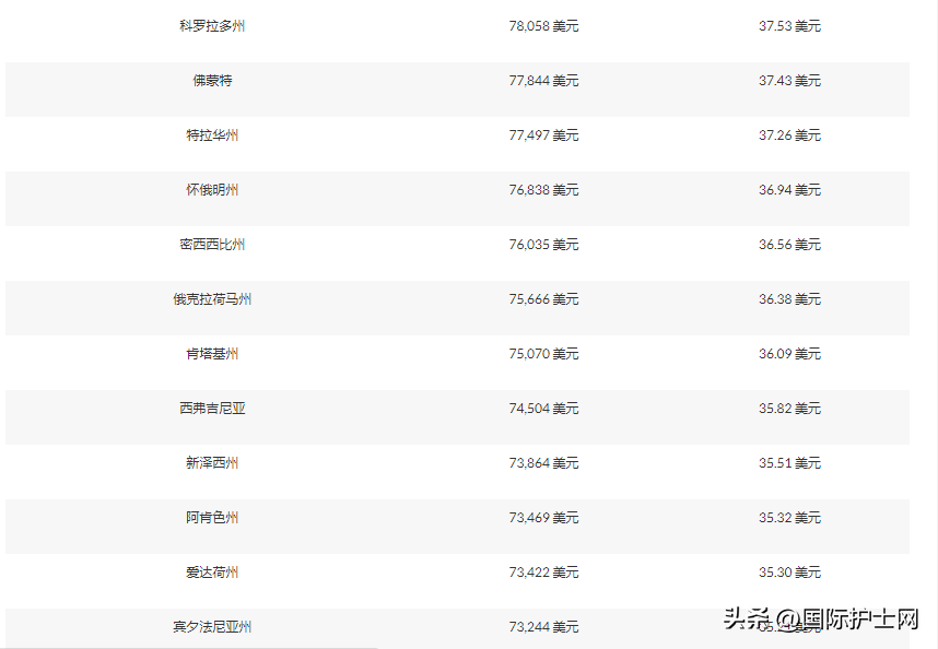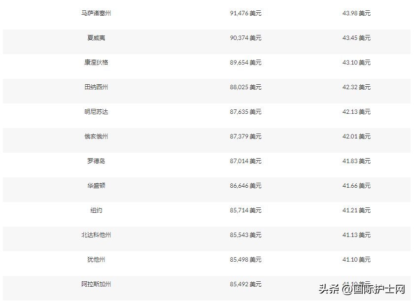 各州美容護(hù)士工資