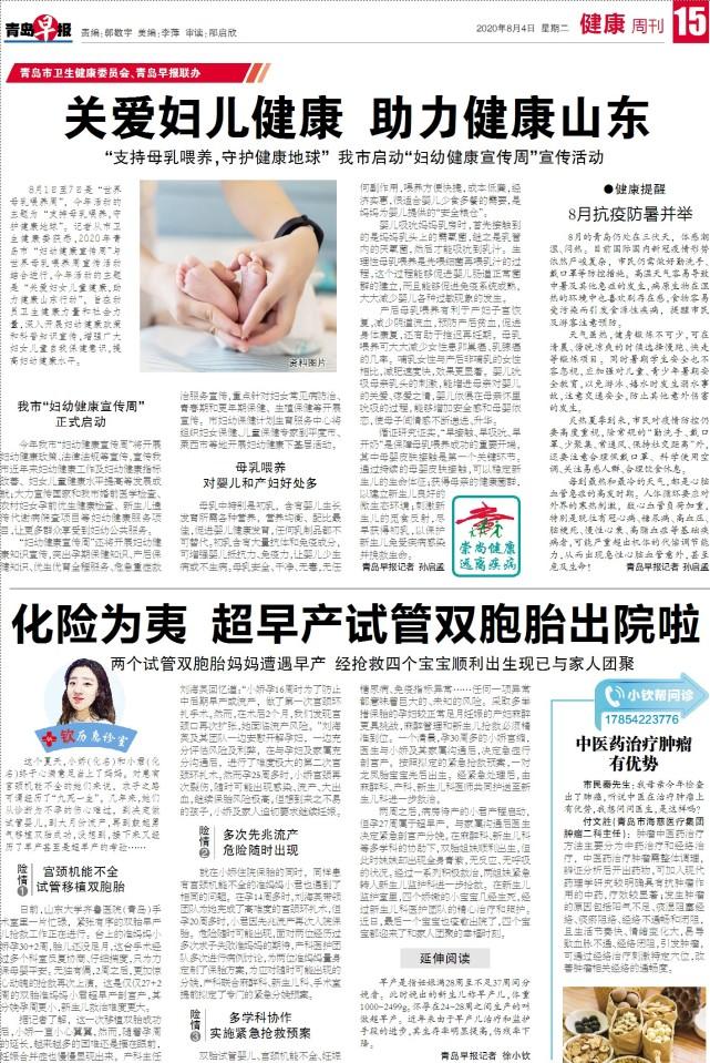 8月1日至7日是“世界母乳喂養(yǎng)周”,今年活動的主題為“支持母乳喂養(yǎng),守護(hù)健康地球”。記者從市衛(wèi)生健康委獲悉,2020年青島市“婦幼健康宣傳周”與世界母乳喂養(yǎng)周宣傳活動結(jié)合進(jìn)行,今年活動的主題是“關(guān)愛婦女兒童健康,助力健康山東行動”,旨在動員衛(wèi)生健康力量和社會力量,深入開展婦幼健康政策和科普知識宣傳,增強(qiáng)廣大婦女兒童自我保健意識,提高婦幼健康水平。