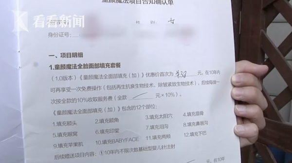 丁女士說:“太陽穴是三萬八,額角也是三萬八,鬢角也是三萬八,說起來我很生氣,確實一點果都沒有。美容院老板外號叫‘甜蜜姐’,天天對我說‘我們是好姐妹、我們是好朋友、我們是你的親姐姐’,我們就聽了她的花言巧語就去了,很多人都圍著我,很親切,到哪都是姐姐妹妹,我也感覺挺好的,壓根就沒用腦子去想,他們就逼著我簽下協(xié)議?!?/p>