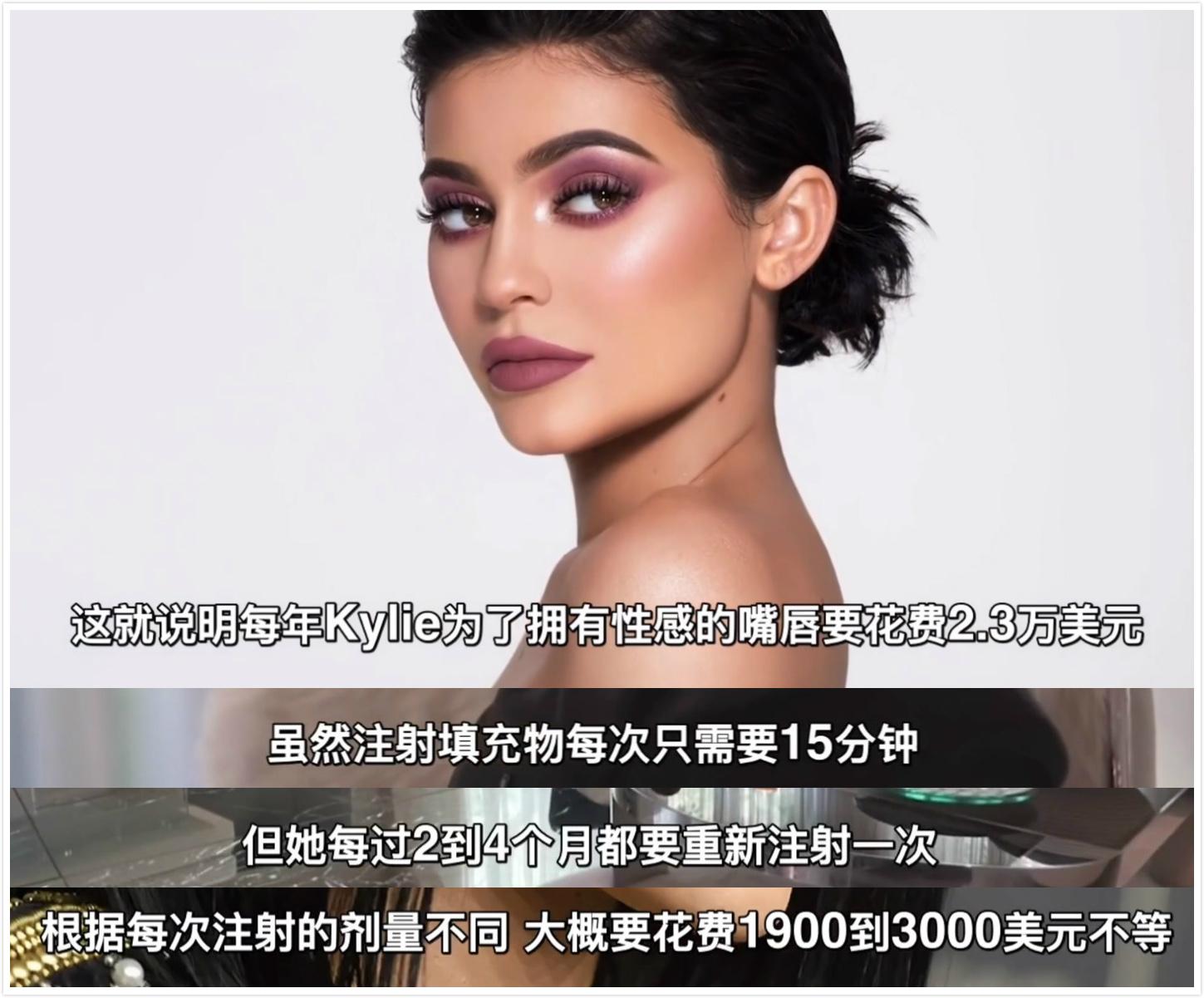 那么一年凱莉花在豐唇上的錢大概是多少呢?她每2-4個(gè)月之間要重新注射一次,根據(jù)劑量不同,價(jià)格也不同,在1900美元—3000美元不等。也就是說凱莉每年花在嘴唇上的錢是2.3萬美元(16萬左右人民幣)左右。