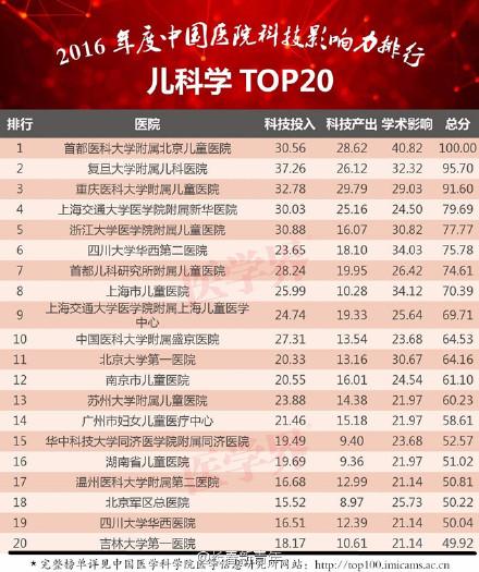 這個(gè)必須收藏轉(zhuǎn)發(fā),中國有影響力二十大的兒科醫(yī)院,婦產(chǎn)科醫(yī)院,整形科醫(yī)院。內(nèi)容源自2016年度中國醫(yī)院科技影響力排行榜