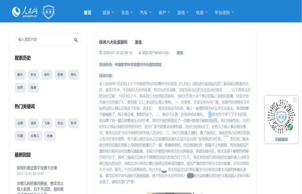 網(wǎng)友在“人民投訴·一鍵維權(quán)”平臺上留言面部痘坑激光調(diào)節(jié)失敗。