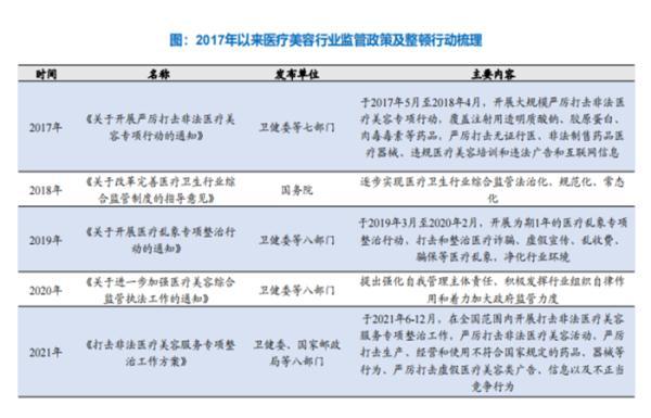 2017年以來醫(yī)美行業(yè)監(jiān)管政策及整頓行動梳理。