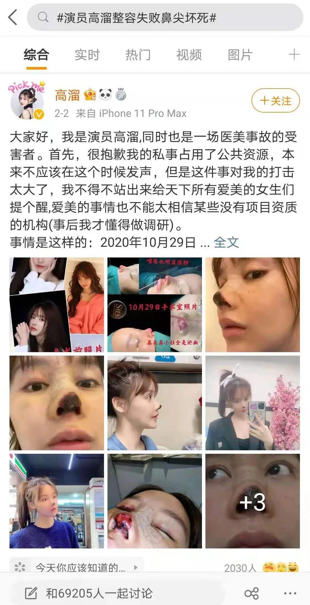今年2月2日,女演員高溜微博發(fā)長文,講述了自己在廣州一家叫做“熙施時光醫(yī)療美容門診”(以下簡稱“熙施時光”)做醫(yī)美鼻子整形失敗的不幸遭遇。文章稱,其術(shù)后不但沒有變美,還出現(xiàn)排異、發(fā)炎,甚至壞死等癥狀,并且因此失去了工作,損失片酬40萬元,面臨高額的違約賠償200萬元。(此前報道:女演員自曝整容失敗毀容)該事件后續(xù)調(diào)查情況如何?3月25日,廣州市衛(wèi)生健康委公布上述輿情處理情況。經(jīng)調(diào)查,實施手術(shù)的醫(yī)師未取得獨立實施美容外科手術(shù)的醫(yī)療美容主診醫(yī)師資質(zhì),被給予暫停六個月執(zhí)業(yè)活動的行政處罰;該門診部使用未取得相應(yīng)資質(zhì)的醫(yī)師單獨開展隆鼻術(shù),給予警告并處以49000元罰款的行政處罰。