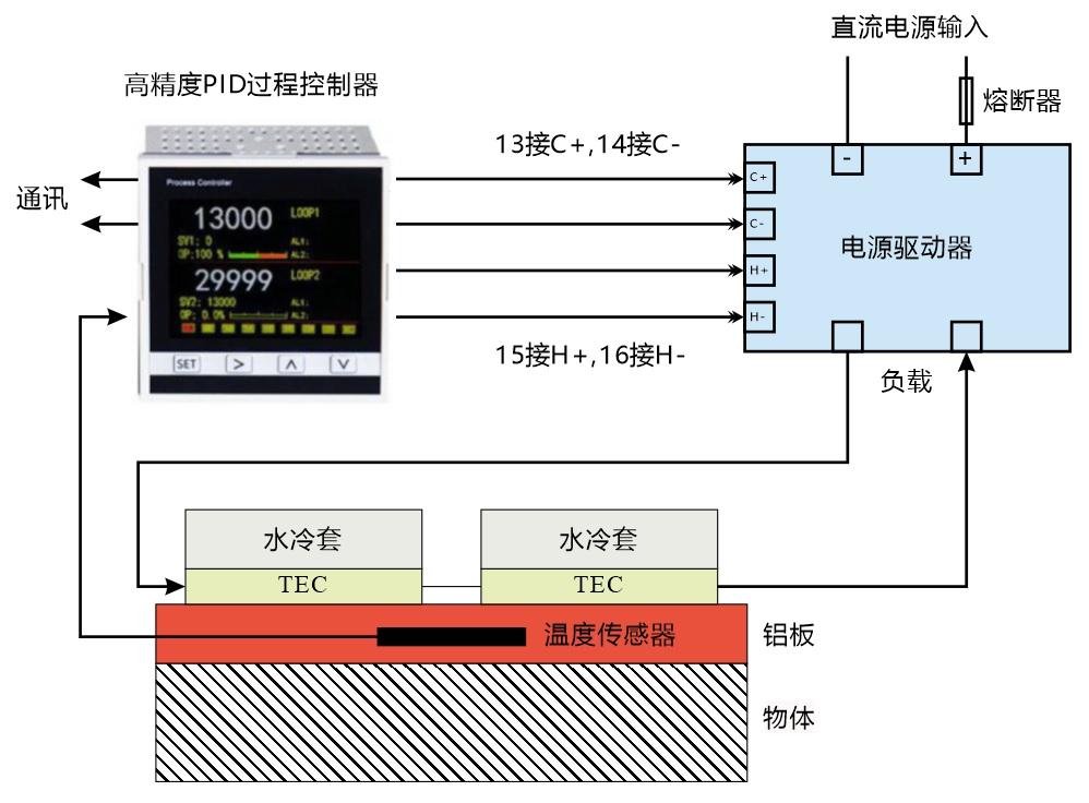 摘要:針對目前TEC半導(dǎo)體制冷器溫控裝置對高精度、模塊化、可編程和遠(yuǎn)程控制等方面的技術(shù)需求,本文提出了一種高性價比的解決方案。解決方案的具體內(nèi)容是采用模塊式結(jié)構(gòu),以24位AD和16位DA超高精度PID控制器作為基礎(chǔ)單元,采用分立模塊式電源驅(qū)動器。此解決方案可根據(jù)不同應(yīng)用場景選擇不同功率的電源驅(qū)動器,配合帶有通訊功能的PID控制器可實(shí)現(xiàn)靈活的組合和應(yīng)用,并配合隨機(jī)軟件可以方便快捷的進(jìn)行可編程溫度控制。