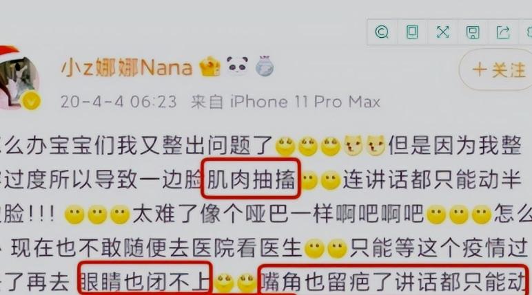 皮膚因?yàn)槲^(guò)度變得的松弛,面部削骨甚至都削到了神經(jīng)線(xiàn),她連正常做表情都成了一種。